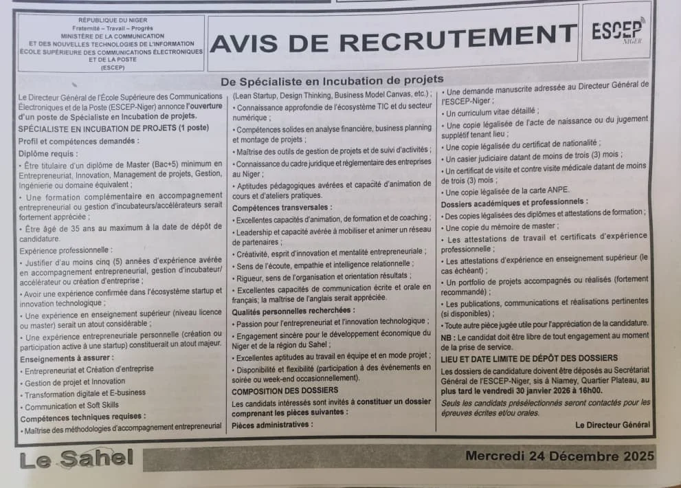 L'École Supérieure des Communications Électroniques et de la Poste (ESCEP-Niger) est un véritable tremplin pour les jeunes désireux de s'engager dans le domaine dynamique des technologies de l'information et de la communication. Avec des programmes variés, l’ESCEP forme des professionnels prêts à relever les défis du futur.